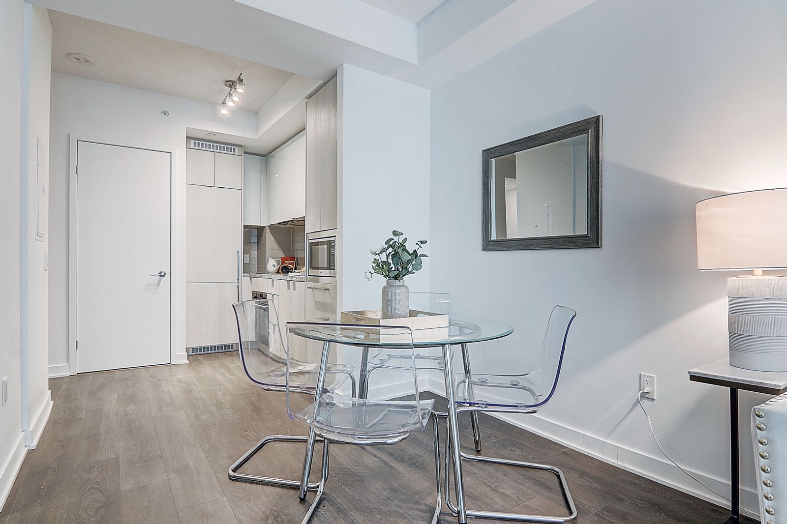 To take away from the one disadvantage, we decided to stage the unit to showcase its true potential, its living space. We cleaned up the place, fixed up any wear and tears, and put in a new light fixture to brighten up the place. Good lighting always has a great effect to make a space look bigger which you can see demonstrated in the before and after photos. We staged the suite to showcase the advantage the size of the unit has and its layout.